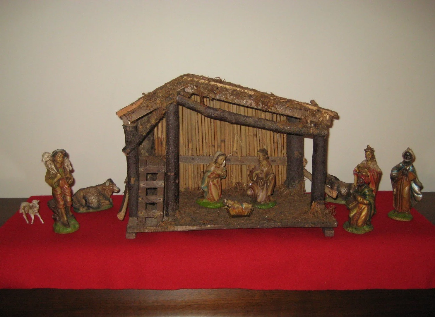 Joseph has lost his staff. The moss on the manger roof is splotchy. The donkey has no ears and the cow only one of her horns. Since the nativity scene came from Sears and was inexpensive in the first place, why don’t we just replace it?