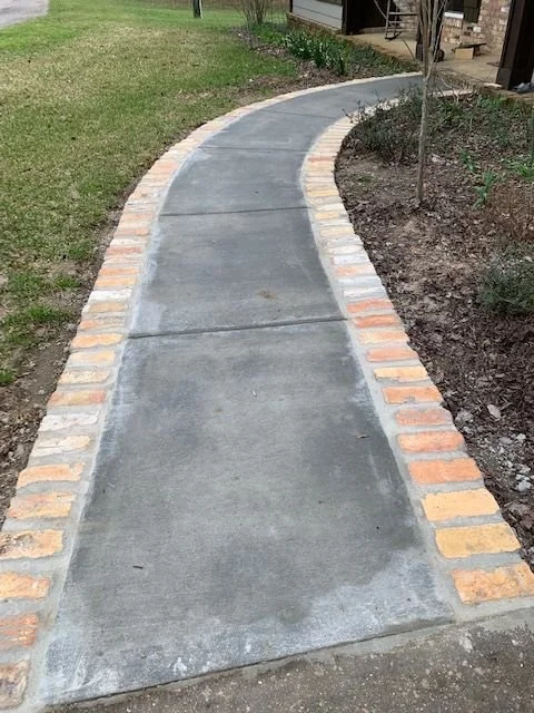 Twenty-five feet of crumbly brick walk in need of replacement. Our walk was an open invitation to tumble and spend time recuperating from a bad fall. The brick beauty was long gone, replaced with broken shards interspersed with weeds. But just try to get a brick and concrete expert out to restore it. Not twenty-five feet. Contractors on big box store lists have homes to build and landscapes to design. Finally, Al found a local contractor who agreed that he could do twenty-five feet. He suggested a concrete walk with brick to match the house inlaid on either side.