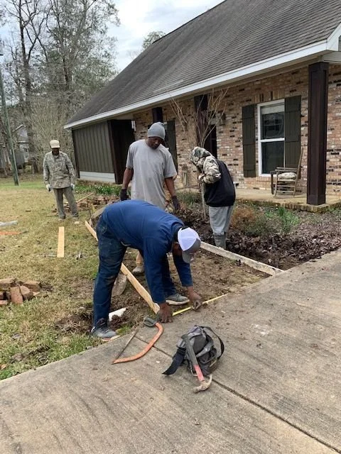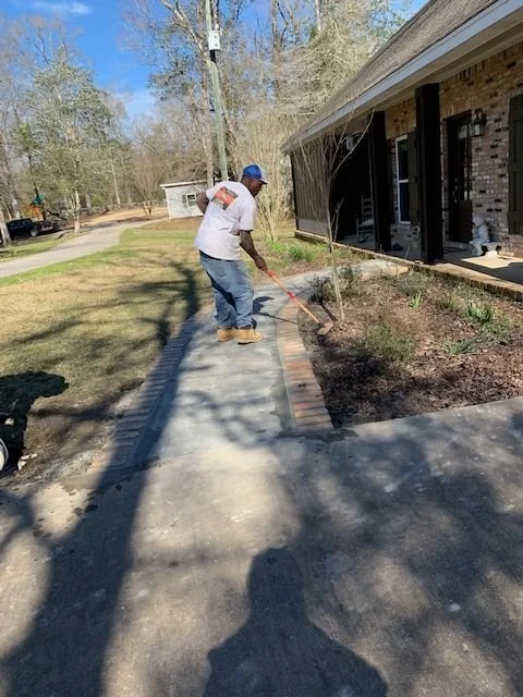 Twenty-five feet the local contractor showed to his brick and concrete guys. I could see immediately they took to my twenty-five feet. Examining the damage, they dedicated themselves to forming a plan. I could see eagerness in their discussion. They planned out exactly how the walk should fit under the porch. I watched their work over the next few days. They poured concrete and endlessly smoothed it out. After checking to be sure the brick matched the house, they laid and meticulously filled in on both sides.
